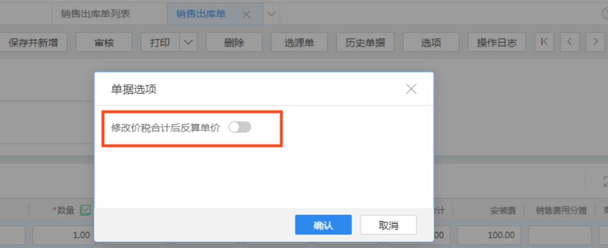 場(chǎng)景:家居建材產(chǎn)品常常涉及到安裝,由此需要收取一定的安裝費(fèi)用,但又不能隨便修改產(chǎn)品的單價(jià) 解決方案:可變通處理,通過關(guān)閉“修改價(jià)稅合計(jì)后反算單價(jià)”參數(shù),再修改價(jià)稅合計(jì),則不影響此前設(shè)置的單 價(jià),如原單價(jià)1000,價(jià)稅合計(jì)1130,關(guān)閉該參數(shù)后,價(jià)稅合計(jì)修改為1230,單價(jià)依然為1000,也可通過負(fù)折 扣實(shí)現(xiàn)在價(jià)稅合計(jì)中增加安裝費(fèi)的場(chǎng)景;